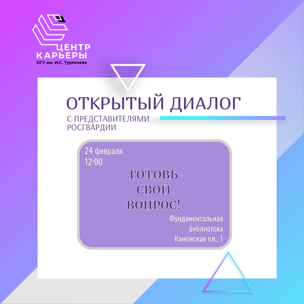 Приглашаем Вас на уникальное мероприятие — открытый диалог с представителями Росгвардии! Это отличная возможность задать вопросы, обсудить актуальные темы и узнать больше о работе правоохранительных органов.
