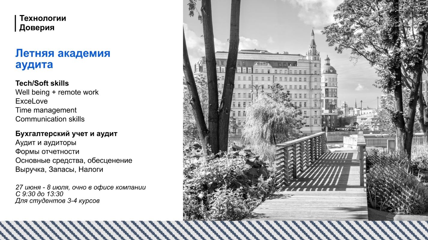 — возможность познакомиться с компанией, получить знания в области аудита и фаст-трек на стажировку.