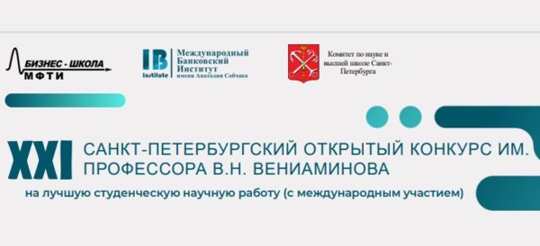 XXI Санкт-Петербургский открытый конкурс имени профессора В.Н. Вениаминова на лучшую студенческую работу (с международным участием) организован Комитетом по науке и высшей школе Правительства Санкт-Петербурга, Международным банковским институтом имени Анатолия Собчака» и Физтех-школой бизнеса высоких технологий МФТИ.